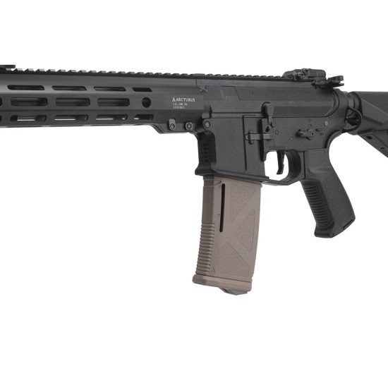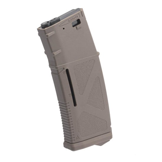 Le chargeur AEG Arcturus DMAG M4/M16 30/130 RDS en finition FDE est un accessoire indispensable pour les joueurs d'airsoft recherchant performance et fiabilité. Conçu spécifiquement pour les répliques M4 et M16 électriques (AEG), ce chargeur hybride combine la praticité d'un chargeur standard de 30 billes avec la capacité étendue d'un tambour de 130 billes, offrant ainsi une autonomie exceptionnelle sans compromis sur la maniabilité.