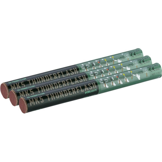 The MK5 Thunderflash detonating stick from Enola Gaye is a pyrotechnic device designed to deliver a powerful detonation accompanied by an intense bright flash. This product is especially appreciated in hunting, sport shooting, and outdoor signaling operations. Its design ensures simple, safe, and effective use, providing hunters and outdoor professionals with a reliable tool to attract attention or scare game.