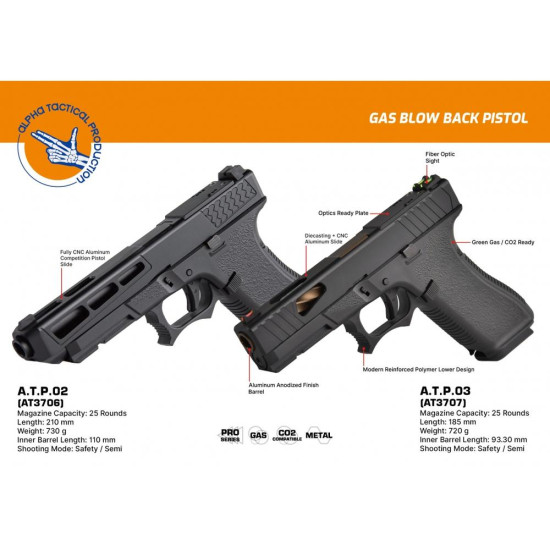 Réplique GBB A.T.P Semi Metal Noir Golden Eagle - Métal et Polyamide - Système Gaz Blowback - Précision et Réalisme